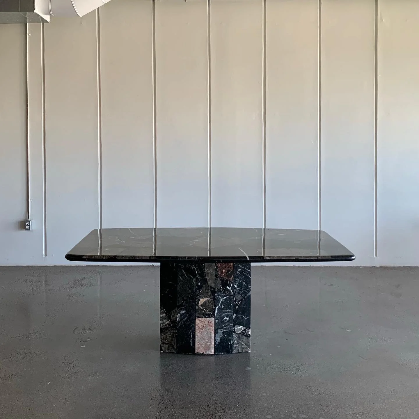 PIECE: THIS PIECE IS A VINTAGE BLACK MARBLE TERRAZZO DINING TABLE.